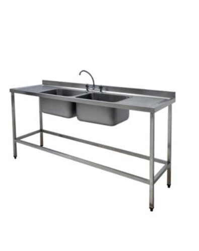 Lavaplatos integro de ac inox 304 modelo TUR de 1900 x 600 x 850 mm con dos cubas de 500 x 400 x 250mm soldada y 2 secadores , estructura de ac inox 304 perfil 30 x 30 con patas regulables.